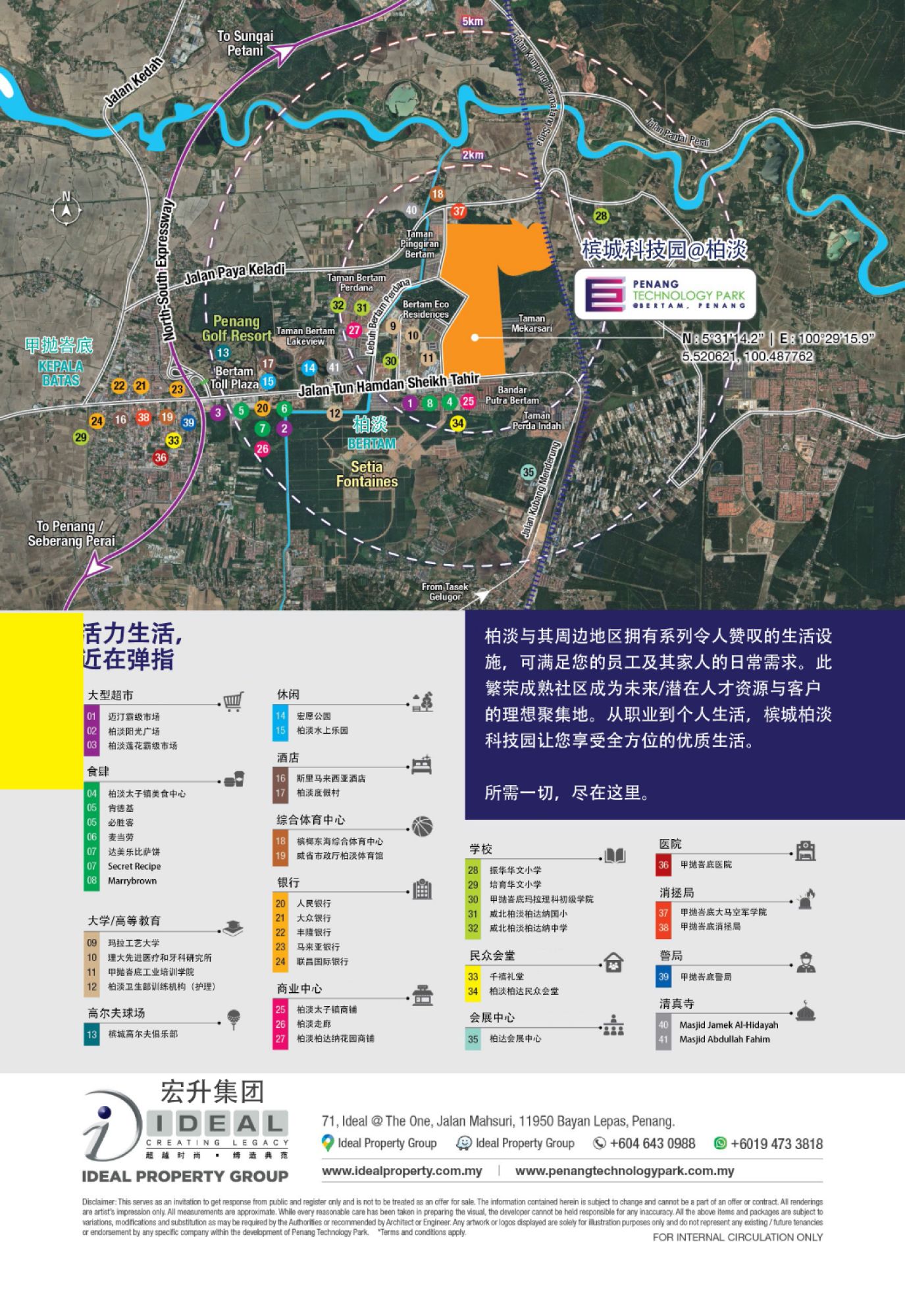 • East connectivity to the rest of the world via Penang Port (23km) & Penang International Airport (42km)
